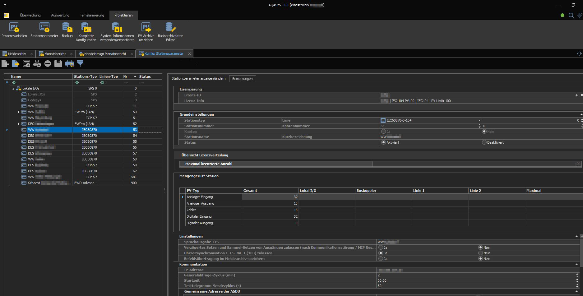 - Standard-Schnittstellen sowie proprietäre Protokolle integriert: IEC 60870-5-104 (TCP) ist voll in AQASYS integriert (inkl. archivierte Werte mit Zeitstempel) und selbst komplexe Netzwerkstrukturen sind kein Problem.